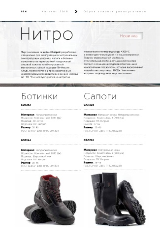 Перспективная линейка «Нитро» разработана поверхностях температурой до +300 С Обувь серии «Комфорт» универсальна низких и высоких температур (от -30 до +150 С),