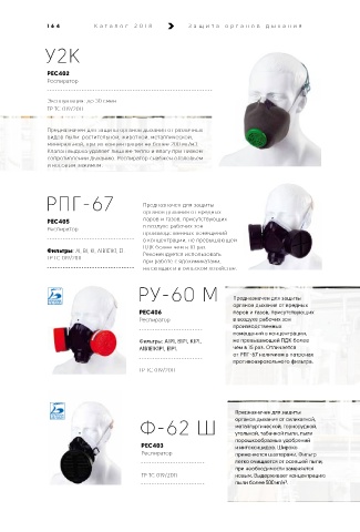 164 К а т алог 2018 Защит а орг анов дыхания К а т алог 2018 Защит а орг анов дыхания 165