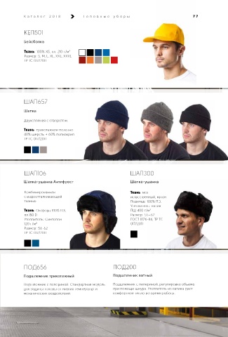 76 К а т алог 2018 Т р и ко та ж К а т алог 2018 Г оловные уборы 77